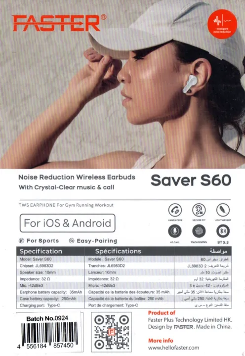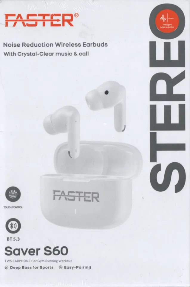 Specifications of Faster-Saver S60 Airbuds, 1 Year Brand Warranty, Awesome Build Quality, BT 5.3 Sppourted